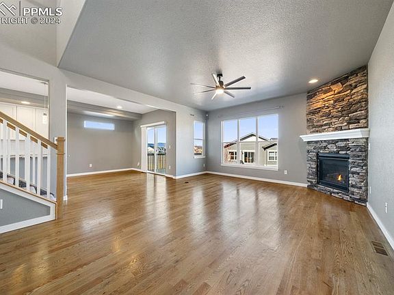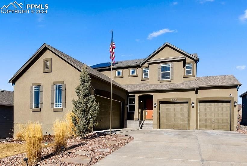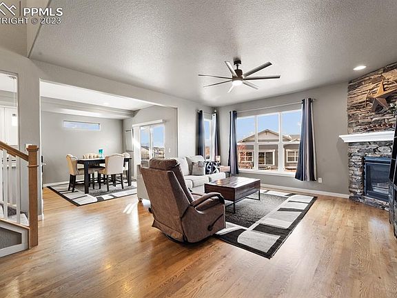 WOW! Stunning 2-story home in North Fork, near Pine Creek HS! This beautiful Vantage Home is like NEW, but even BETTER! The popular Carlton II floorplan has a FOUR-car garage, SIX beds, FOUR baths (including a main level bedroom and ¾ bath)! You’ll love the newly remodeled kitchen with gorgeous granite with island seating, the high-end Samsung Black Stainless appliances, double oven, gas range, upgraded pantry with wood shelves and new modern barn door, tiled mud room with new cabinets/countertops! Kitchen opens to eat-in nook and the large great room with beautiful stoned, gas fireplace – creating a warm, open feel! Main level features a separate dining room at front of home, which could also be used as a study or formal sitting area, whatever works best for your lifestyle! Upper level includes the spacious primary suite with beautiful 5-piece ensuite with quartz countertop, sleek freestanding shower and walk-in closet, plus 3 more bedrooms and tiled laundry room. Home has been upgraded galore with fully finished basement with rec room, stoned wall wet bar and fireplace with floating shelves, gas fireplace, luxury vinyl plank flooring, an additional bedroom, 3/4 bathroom, another room perfect for gym/work out area, craft or playroom. Additional home improvements include: SOLAR, New AC/Humidifier, Radon Mitigation system, New Paint, New Carpet, Updated Modern Lighting throughout the home, all countertops are granite or quartz! The 4-car garage is insulated and features metal overhead shelving for additional storage plus 50 amp RV outlet and holiday lighting hookup. Exterior of the home is low-maintenance stucco. Enter from adorable covered front porch! Walkout from kitchen to composite deck and enjoy the fully fenced backyard, with natural gas line to deck for BBQ and to firepit (never a need for propane). Relax in the Hottub and unwind under the pretty Colorado sky! Home backs to Walking Trail/Open Space! Move-in Ready! Welcome Home!