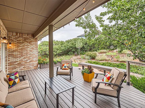 The primary suite is a peaceful retreat with high ceilings, crown molding, updated 5 piece bath, walk in closet and a tranquil backyard view. The walk-out basement offers a flexible living space with two additional bedrooms (or office), a full bath, and an open recreation room —perfect for kids, guests and your hobbies. Outside, a custom-built back deck provides the ideal space to relax and enjoy the fully landscaped backyard. Imagine starting your day with a morning coffee in your peaceful backyard, where you might spot foxes and deer, then unwinding in the afternoon on your front porch, taking in a breathtaking sunset over Castle Rock.... This home has experienced top to bottom recent updates including a new roof (2024), new carpet (2024), refinished floors (2024), recent kitchen renovations (2024), new hot water heater and AC unit (2020), and much more! Located in the sought-after Plum Creek community, you are a block from open space and trails. You’ll love being near local favorites like La Loma Mexican, Lost Coffee, Glacier Ice Cream and Whole Foods. Costco is opening in 2027! Don’t miss your chance to own this spectacular, meticulously and lovingly maintained home!