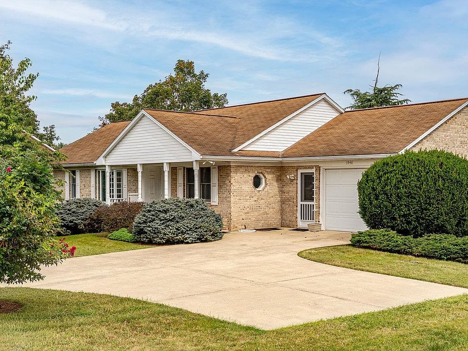 Well maintained all brick ranch home with walkout basement that is finished with an unfinished storage area. The home offers convenient location, one level living, expanse of finished basement offering plenty of living space and storage. First floor comforts include large living room, dining room, eat in kitchen with pantry ,laundry room, and large primary bedroom, and secondary bedroom or office. Large windows offer natural light. Enjoy the added all season sunroom with steps to the backyard. Downstairs includes an efficiency for extended guests with three bedrooms, full bathroom, and living room. Walkout onto the concrete patio and enjoy private yard with a storage building that conveys.