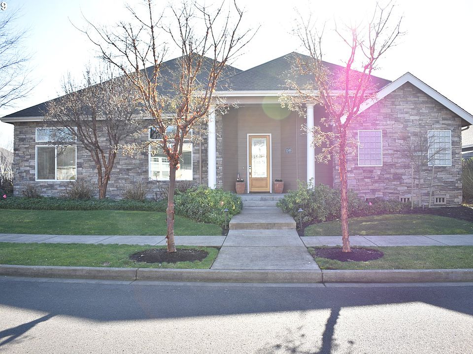 This beautiful one level home features an open concept floor plan, tall ceilings, 4 bedrooms and 2.5 baths. Stainless steel Dacor appliances. Office space/den with french doors & builtins. Large island bar off kitchen, granite counters, hardwood floors. Oversize 3 car garage. Separate Living & Family rooms. Covered outdoor entertaining space with outdoor gas fireplace. Private lot that is just under 1/4 acre. Full security system.