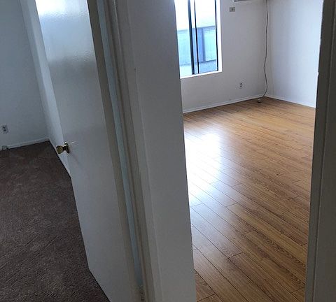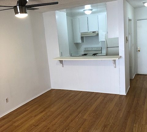 Spacious one bedroom apartment, comes with full kitchen stove, fridge, plank flooring, blinds, new ceiling fan w/remote, lots of cabinet space, wall a/c unit, shared on-site laundry room, indoor cat okay, inter-com entry, garage parking space, near National and Venice Blvd, close to shopping center, train lines, farmers market every Tuesday afternoon,