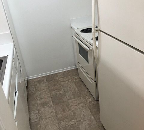 Full kitchenSpacious one bedroom apartmentPlank flooringLots of cabinet spaceShared on-site laundry room