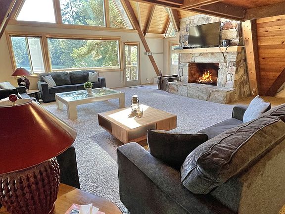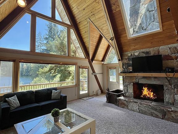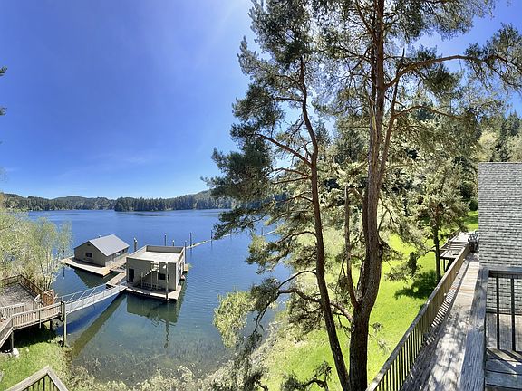This Majestic Vacation Rental occupies 8+ acres on the tranquil South Tenmile Lake boasting 5,038 sf, 6bd & 4.5ba lake lodge that exudes all the charm & romance of the perfect getaway. The open concept with towering high ceilings and windows showcases mesmerizing lake views while allowing natural light into the massive home. Secluded in a private bay within a world of its own, perfectly equipped to host all your friends & family with plenty of room that sleeps 16. Leave the hustle and bustle behind and find yourself in total seclusion at this boat access-only paradise. Immerse yourself in the numerous local water activities with all the Southern Oregon beach adventures & ATV dune activities right at your fingertips. Enjoy world-class fishing where trophy Bass, Trout, Salmon, Steelhead, Catfish, Perch plus more come easy. Fill your boat with your crew for a day of water skiing, kayaking, sailboat races or just take in the bountiful nature that surrounds the place. The expansive dock with an estimated 4,000 sf, ramps & 2 boathouses offers plenty of space to revel in lake life. At the end of the day share all your newfound memories while relaxing & some hydrotherapy in the huge 12-person Jacuzzi & built-in Sauna. Includes a large indoor game room so bring on all challengers & your A-game. The home is fully furnished with many upgrades including a brand new $40K septic system. Come relax, swim, canoe, and soak in the sun where city lights disappear & the stars magnify in the night sky. Rinse & repeat! Includes 2002 Seawhirl boat. Must see DRONE VIDEO on Vimeo type in "3346 S Tenmile Lakeside Lodge." Buyer to verify all information.