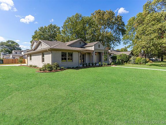 Stunning Midtown Renovation in Adams Estates. This 3 car, 4 bedroom, 4 & 1/2 bath home offers an incredible floor plan full of natural light and finishes selected by Emily Davis Interiors. Main floor provides the primary suite down with two separate closets and an absolutely beautiful primary bath. 2nd bedroom with ensuite down, large office with built-ins, powder bath, vaulted living room opening to kitchen and additional living / dining. Large mudroom with easy access from laundry room, garage and stairs leading up. Second level has 2 bedrooms, 2 full baths and a large game room / work space with a windowed closet for storage or a fun kids play area. Covered patio opening up to yard with room for a pool. Corner lot. Walking distance to Brookside, Utica Square and more!