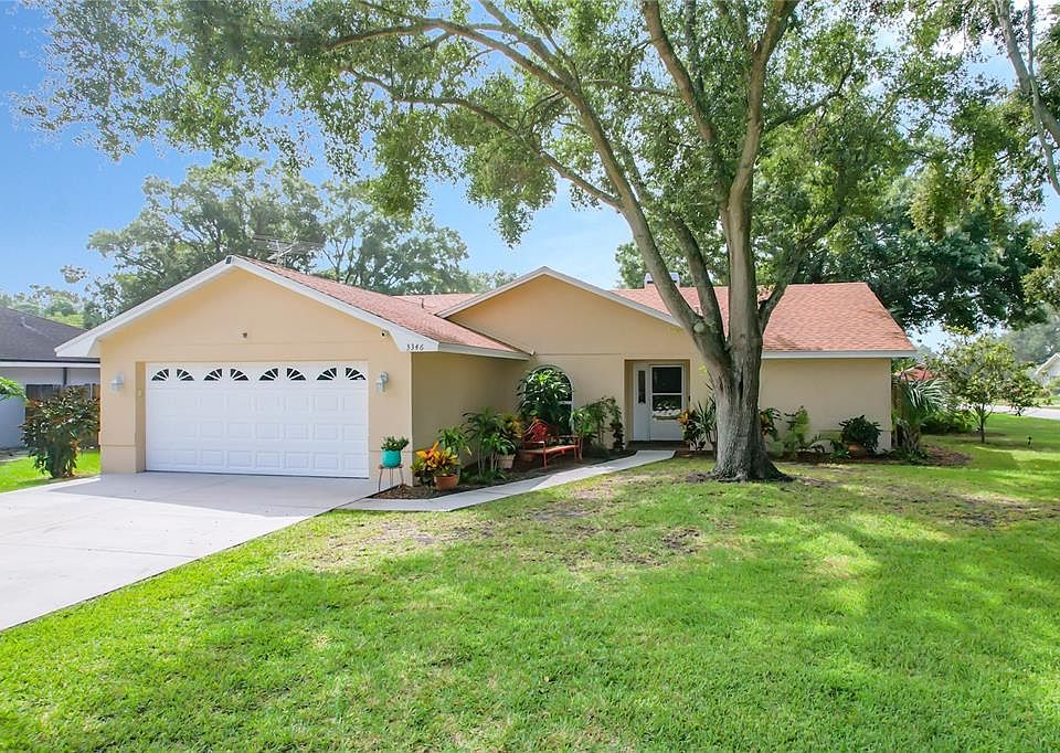 INCREDIBLE ENTERTAINING AWAITS YOU in the incredible backyard of this meticulously maintained and updated home perched on an oversized corner lot! This home is over 1800 s.f. living area and includes a multi-purpose Florida Room on the back of the home. The central kitchen has been remodeled with everything new and features 42" wood cabinets, Quartz countertops and Stainless appliances. There's both causal and formal dining areas! The master suite is spacious with a bath offering a newly remodeled vanity/dressing area with a full wall of custom built cabinetry, granite counters and walk-in closet. The guest bath has been completely updated and features a white vanity and granite top. The Florida room off the back of the home makes a great 4th bedroom if needed, Family room or a great play/study space. Open the back door to your privacy fenced oasis - you'll enjoy entertaining or relaxing in the inviting Key West corner that features a paver patio with a Pavillion cover, totem poles, lighting and lushly landscaped. There's an 11x20 workshop with an awning overhang and deck end with double doors, it's the perfect mancave or she shed! There's even a corner in the yard that offers a covered hammock for outdoor napping. The inside laundry room offers overhead cabinetry and leads out out to the two car garage. The concrete sidewalk and 20 ft. wide driveway were repoured in 2020. Other updates include: Double pane windows (2021), Roof (8/2023), Drainfield (2020) and LVP flooring through the entire home. Don't miss this outstanding home located in a great tree filled neighborhood with NO HOA!