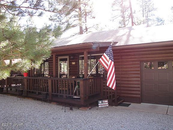 Immaculate and updated log-sided cabin with 2 bedrooms, 2 baths, and 1-car garage in Pinetop Lakes Mountain Homes. Nestled in the trees, this property is a great year-round home or summer getaway in the mountains. Free-standing gas fireplace for convenience; can be removed and wood-burning fireplace restored. Extra room can be office, workroom, potential BR, sewing room. HOA offers lots of amenities.
