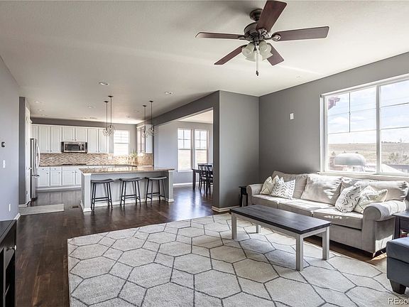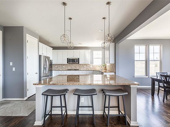 Upgraded lot that backs to open space. Amazing Mountain Views gorgeous home in the Award Winning Anthem Neighborhood. 6 bedrooms, 4 baths, large Loft with closet, plenty of storage, Main floor Study w/French doors, Gourmet Kitchen w/BIG island & Pendent lights, Granite Slab counter-tops, back splash, Upgraded cabinets w/molding, Pantry, stainless steel appliances double oven, Gas Cook- top, Dishwasher & Microwave Oven, 8ft doors, Family room w/Pre-wired surround sound, Upgraded Hardwood floors, Fireplace, Upstairs Laundry, tile floors in all bathrooms, Master bedroom w/ views and coffered ceilings, 5-piece Masters Bath w/ granite countertops, Upgraded plumbing & hardware fixtures, Central air conditioning. Finished walkout basement, large deck. All south facing windows on 1st and 2nd level have energy efficient window tinting and it keeps the home cooler and more energy efficient in the summer months.