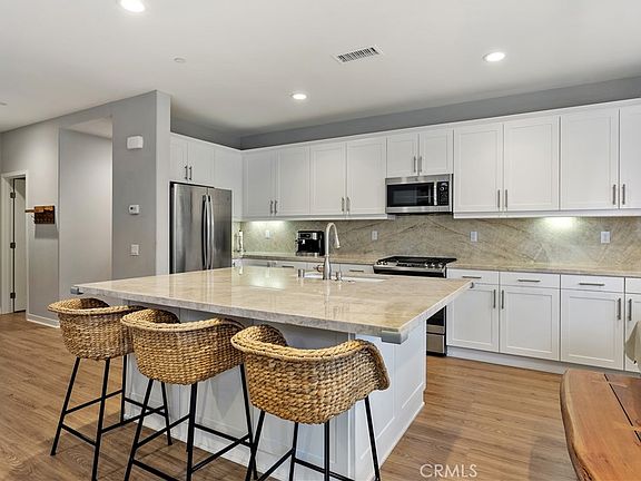 Discover the ideal lifestyle you have always wanted in this beach close, immaculate newer construction home! Located just 2 miles from Dana Point Harbor, The Cove is a gated community within the prestigious Pacifica San Juan community. This Plan 3 is the largest floor plan boasting 4 bedrooms, 3 full baths with 2098 square feet of living space and offers the coveted downstairs bedroom with full bathroom that could double as an ideal office or guest suite. Over $100,000 of upgrades and valuable corner location with abundant natural light makes this home a treasure for the next lucky owner. Enter through the front door and be instantly greeted by an open great room and highly upgraded gourmet kitchen featuring Quartzite countertops with seamless backsplash, center island/breakfast bar, dining area and stainless steel appliances from GE including microwave, gas cook top, oven, counter depth French door refrigerator with water dispenser. The great room with coastal vibe has a custom built-in media