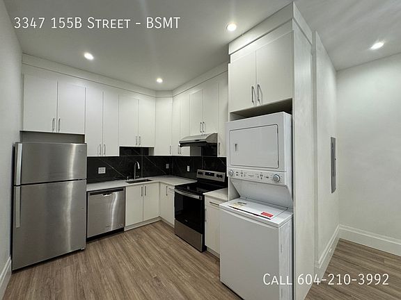 Bedrooms: 2 Bathrooms: 1 Pets: No Pets No Smoking Utilities: Included Available: August 1st One Year Lease Required Security Deposit: Half Months Rent Pet Deposit: Half Months Rent Bright and spacious 2 bedroom, 1 bathroom basement suite featuring modern finishes and high ceilings throughout. Enjoy the comfort of in-suite laundry, a private entrance, and a well-designed layout. Located in a quiet neighborhood with easy access to transit and amenities. to book a viewing. Reference the address: "3347 155B Street Basement"