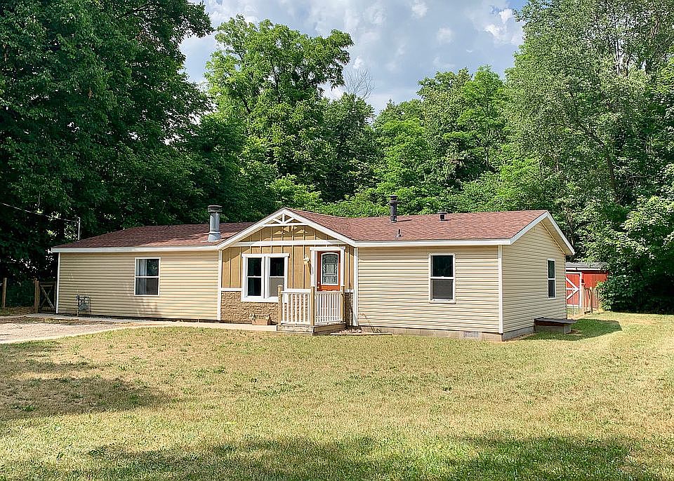 Spacious open floor plan, super clean & ready to move into! 1530 sq.ft. 3 bedroom, 2 bath & a bonus den/office! Master bath has extra large tiled shower & huge linen closet. Large closets in each room. Lots of storage space! Gas fireplace. Dishwasher. Air conditioning. Natural gas furnace. Well/Septic. Laundry room. Breakfast room. 2 Outbuildings. 16’x16’ deck. Fenced yard. Ceramic tile & freshly cleaned carpet floors. 1999 Manufactured home. New roof in 2016. Private location. Lot is 0.77 acres & wooded. $2500 toward buyers closing costs. No land contract. Must be preapproved with bank before showing. Call or text 269-355-0810. For Sale by Owner.