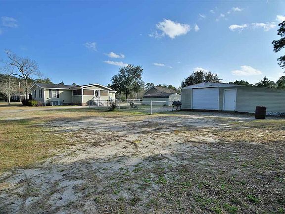 Beautiful 2 Bedroom 2 Bath Home on .77 acre, corner lot. There are two driveways around the house that can park about 6 cars. In the backyard you will find a fenced in yard, 1 storage unit, and a detached 1 car garage with extra storage. You can enter the house through the front door with a covered porch or through the back door with a screened in porch. Large Living room and formal dining room gives you plenty of space to entertain. The kitchen opens to the living room and has plenty of counter top space for cooking and plenty of cabinets for storage. The large master bedroom is equipped with a large walk in closet with office space. This space can also easily be converted to a 3rd bedroom if needed. This is a very wide manufactured home that has been very well maintained. Square footage is approximate and not guaranteed, buyer is responsible for verification.