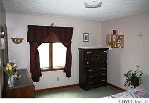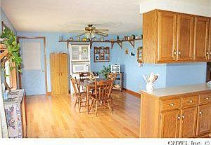 Wow! Country setting. What a view, what a house! Plenty of space both outside and inside this raised ranch. Move-in condition with much updating just done in lower level. Three bedrooms down, master has its own bath. Large utility room and work shop area. Presently, a bedroom up is used as master bedroom, but could be used as an office. View to the south is farm fields and windmills; to the north is Oneida Lake and beyond.