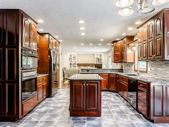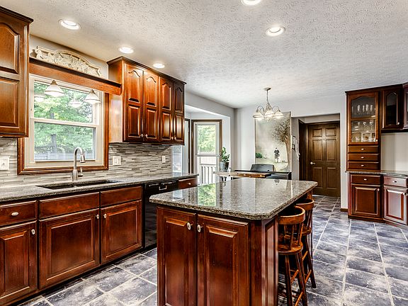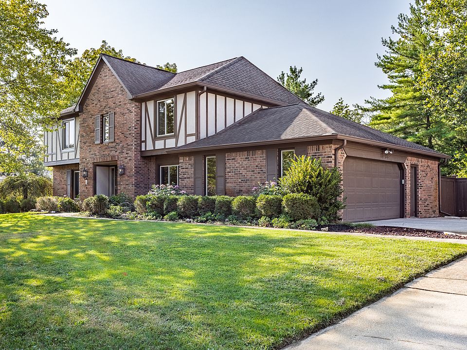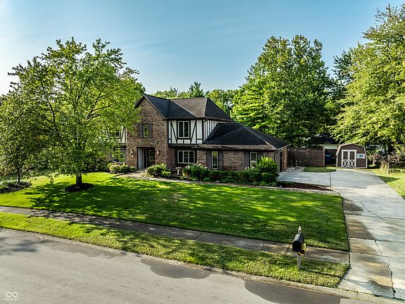 Well-maintained Tudor 2-story w/ finished basement and 20'X40' pool. Deep end of pool is 9-1/2 ft. with diving board. Automatic pool cover new 2020. Pool liner new 2024. Backyard living experience enhanced by 6' cedar fence and 630 sq. ft. two-level deck. Open concept kitchen to family room. Custom cherry cabinetry. Granite countertops and induction cooktop new 2019. Down-draft exhaust. Movable kitchen island. Master bath and bedroom remodeled 2017. Large home office features double, leaded glass doors. Custom built bar in Basement. HVAC new 2015; new heat exchanger 2024. New sump pump and back-up pump 2024. New water heater 2023. New water softener 2023. New windows 2023. New garage door springs 2024. Irrigation system w/ private well (well is for irrigation only). Garage features 18' of floor-to-ceiling shelving plus an alcove. 10'X12' mini-barn has a loft. Quiet cul-de-sac street. Just 1.5 mi from Carmel High School.
