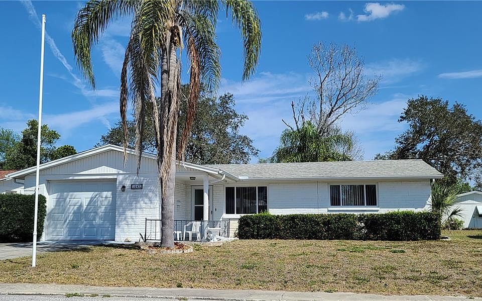 Rare find. Family owned for 25 years! Well maintained 2 bedroom, 1 1/2 bath Aloha Gardens. Large living room, family room and florida room. Kitchen open to family room and features refrigerator NEW in Feb 2020, Newer range, microwave approximately 3 years NEW and dishwasher. Washer. Dryer approximately 3 years NEW included. Lots of counter space. Double pane windows and sliding glass doors. 28'x12' sun room/florida room/enclosed screened porch with vinyl windows (Additional living space of 364 sq ft not included in heated sq footage), indoor outdoor carpet. Well for sprinklers and sprinklers as is not in use. 22'9" x 15'5" Garage. Utility sink. 1/2 bath with shower and toilet. 2 car drive way. Hot Water Heater end of 2016 or beginning of 2017. Hot tub seats 4! Some furniture can convey. A must to see. Convenient to everywhere! Nearby shopping and restaurants. Approximately 20 minutes to Suncoast Parkway. 10 minutes to Popular Tarpon Springs, 15 minutes to Beach Fred Howard Park. 40 minutes to Tampa International Airport. 30 minutes to St Pete Airport. Hurry, this one will not last long.
