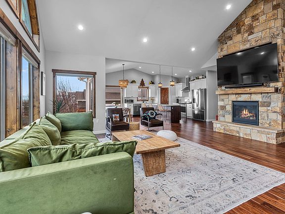 - Breakfast Bar, Ceiling Fan(s), Central Vacuum, Double Vanity, Enclosed Toilet(s), Granite Counters, Kitchen Island, Linen Closet, Open Floorplan, Pantry, Primary Downstairs, Shower/Tub Combo, Soaking Tub, Solid Surface Counters, Stone Counters, Tile Shower, Vaulted Ceiling(s), Walk-In Closet(s)