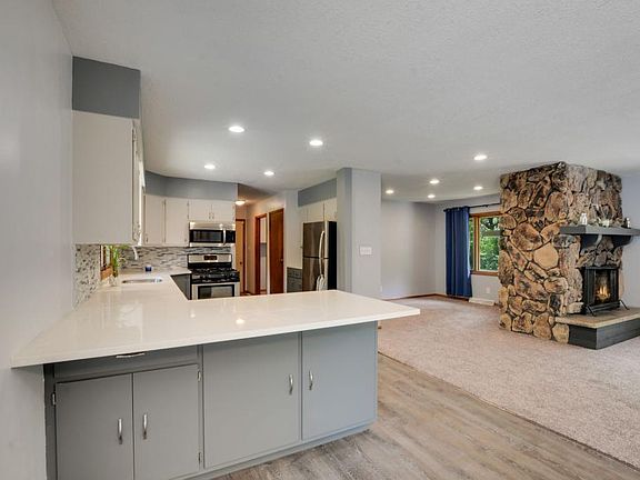 This is it! This beautifully updated rambler is situated on over 7.5 picturesque acres across the street from Green Lake in Princeton! Simply move in & enjoy this very spacious home that features an open living room, dining room & kitchen with a bonus hearth room on the other side of the double-sided fireplace! Fresh interior paint throughout this charming & well cared for home. The interior is light and bright with knock-down ceilings & recessed lighting, new carpet and wood-look vinyl floors. The kitchen offers granite counters, a stunning tile back splash, ample storage & stainless steel appliances. The private master suite features a remodeled bathroom with amazing tile work in the shower & new fixtures. 4 bedrooms on the main level with abundant natural light, new lighting & carpet! You'll enjoy spending time on the private patio right off the walkout lower level. Public lake access is close! You're going to enjoy the secluded feeling nestled in the trees of this acreage lot!