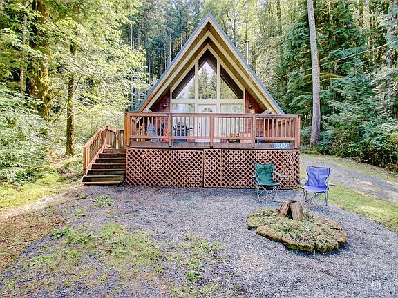 Welcome to your charming A-frame retreat at Lake Cavanaugh! This cozy 680 sq ft home, built in 1974 and updated in 2007, blends rustic charm with modern convenience. Nestled on a spacious 12,632 sq ft secluded lot, this private property features two driveways, a 144 sq ft deck, an existing fire pit, and a cleared area ideal for a gazebo or second fire pit. A small storage shed offers a loft, workbench, dryer, & plumbing/power for a future washer. Fully furnished, the property includes a private well, hot/cold outdoor faucets, a pressure tank, hot water tank, and a generator hook-up. An approved design for a 2-bedroom septic system is provided. Under 2 miles from the boat launch, your tranquil lake life awaits!