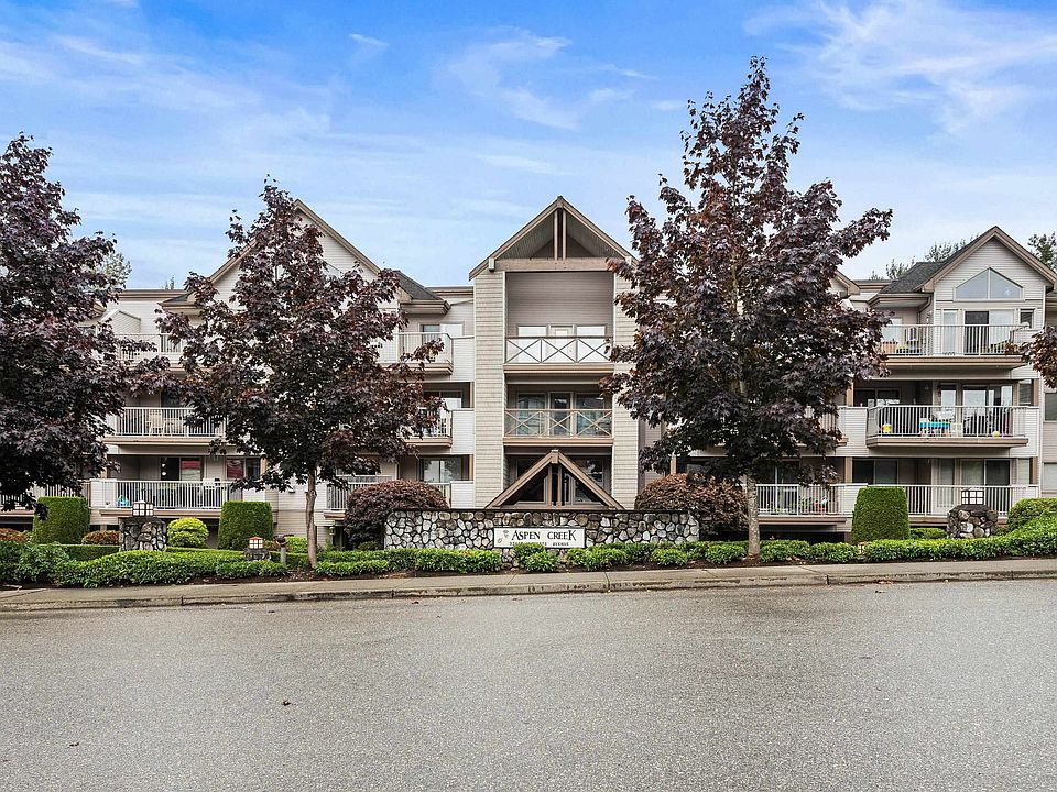 Welcome to Aspen Creek a 71 unit complex located in central Abbotsford. This building is conveniently located within walking distance from Abbotsford's Historic Downtown, featuring; parks, shops, restaurants and more. Great access to Hwy #1 and other major routes. This 734 Sq Ft 1 bedroom is very well maintained with tasteful updates throughout including stainless steel appliances and HUGE 20' 10' balcony. Dogs and Cats allowed with restrictions, bbq's allowed and rentals allowed with restrictions. Catch it while it lasts, call today for more information.