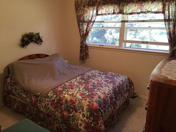 Easy 1 level living with step down sun room leading out to covered patio & private fenced yard. Ceramic tile in kit/dining/bath, FP in living room that looks out on the large backyard. Master w/ 3/4 bath, kitchen has oak cabinets and breakfast bar, newer microwave 7/16, cooktop stove & built in oven. Attached dbl gar & detached single with woodstove, storage shed and wood storage area.