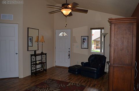 CUTE AS A BUTTON. Beautiful energy efficient Cottage built by Aspen Homes is very open w/vaulted ceilings thru-out. Greatrm, kitchen & eating area w/laminant wood flring. Kitchen w/knotty Alder cabinets, all appl's including convection microwave oven & refrigerator, island/breakfast bar & dining area. Master w/vaulted ceiling, ceiling fan & two closets. Add'l bdrm can be office. Covered back patio w/fenced Xeriscaped perennial garden yard. Front yard tended by HOA. Insulated garage, central AC.