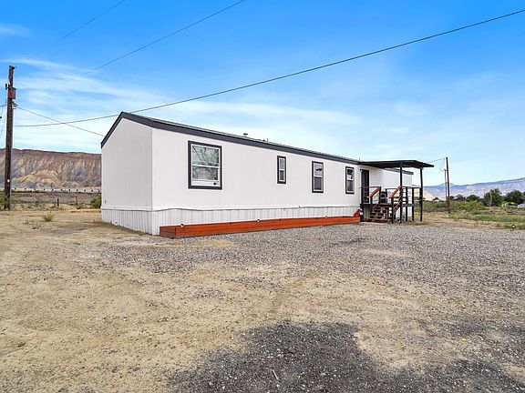 Discover the charm of this manufactured home nestled on a stunning 5.47-acre lot, offering exceptional views of Mt. Garfield. This property is ideally located just minutes from downtown Palisade, providing easy access to the vibrant local community while maintaining a peaceful, rural feel. The home features three spacious bedrooms and two well-appointed bathrooms, making it perfect for those looking for extra space. Home was recently updated with new exterior paint. Enjoy the convenience of nearby Interstate I-70 for seamless travel and exploration. Whether you're sipping coffee on the deck, soaking in the breathtaking mountain views, or enjoying the expansive outdoor space, this home is a perfect blend of comfort and convenience.