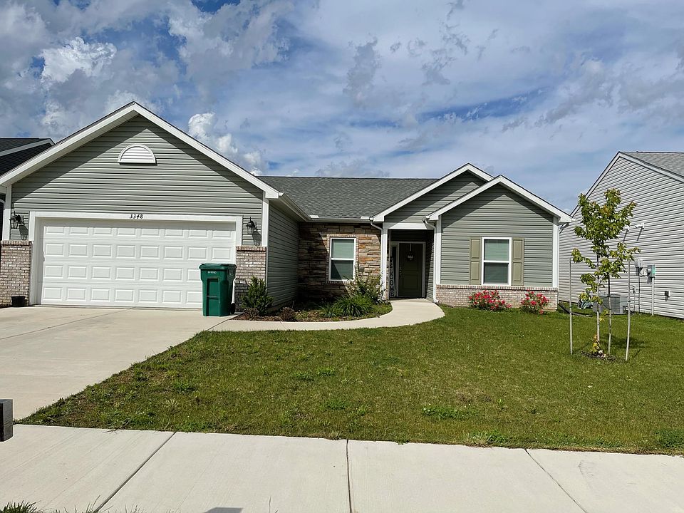 Beautifully crafted less than 2 year old home in Blackthorne subdivision. Large kitchen with granite counter tops, eat-in kitchen which opens to a 14' x 14' patio, open concept, large living room plus a den that can be used as an office. Featuring laminate floors, stainless steel appliances, granite countertops and spacious bedrooms. Large master bedroom connected to a very spacious bathroom with a large walk-in closet and extra large shower and double vanity. Washer and dryer included. Beautifully landscaped with irrigation system. Conveniently located off 52 and Klondike Rd., close to shopping--about one mile from Meijer and Menards, and a golf course. Quiet neighborhood, only about 5 miles from Purdue campus. Tenant responsible for electricity, gas, internet, water, snow removal, lawn maintenance, sewage and trash disposal. Pet fees required for pets.