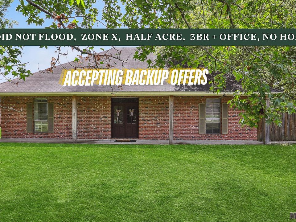 Accepting Backup Offers! Just under Half an Acre with NO HOA and flood insurance is not required! What an amazing home! This 2006 custom built home has 3 bedrooms, 2 full baths, and a detached large office space under the carport. PLUS additional storage area which is currently being utilized as a home gym. This spacious homes’ layout features a true split floorplan, loads of storage, extra large rooms, an oversized main bath, and a semi-open floorplan for the living area. The kitchen boasts hand-crafted cypress cabinets with updated appliances and a large walk-in pantry. The owner suite features a large walk-in closet with a bathroom with a separate shower and bubble jet tub for maximum relaxation. The entertaining in this home will be a breeze when you realize that the sun sets in the front of the home leaving you a shaded backyard for the afternoons along with a fully fenced yard and a gated driveway. The back porch and carport feature enough room for crawfish boils, BBQ's, and so many options for all of your entertaining. With plenty of storage, plenty of space, amazing schools, and so many nearby dining and shopping conveniences, you will ready to call this one your home. This home has it all, don't wait to schedule your showing! Also, roof report is available, and the age is estimated to be 7 years old and in great condition. $300 discount when using Southern Oaks Title.