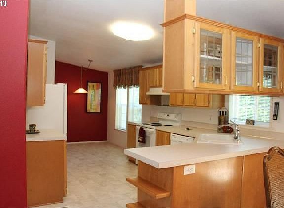 Well maintained manufactured home built in 1998. Nice front and back yard. Vaulted ceilings, beautiful updated kitchen. Open floor plan, 3 bedrooms plus large office. Nice laundry room. Master bedroom with master bath with garden tub and separate shower.Attached 2 car garage. Good size storage/tool shed. Space rent is $465 per month.