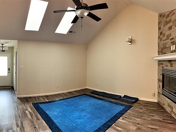 Beautifully updated twin home in a wonderful maintenance free community. This open plan boasts, soaring ceilings with skylights, floor to ceiling stone front gas fireplace, gorgeous eat-in kitchen w/Dolemite counter tops, stainless appliances and high-end finishes, large primary suite w/walk in closet and bay window, huge patio with built in pergola that has detachable canvas shade cover over looking fully fenced backyard. Pristine landscaping!
