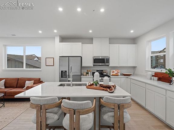 This beautiful end unit new construction townhome is complete and ready for immediate move-in! Featuring the popular Conrad floor plan, this 3-bedroom, 2.5-bathroom home offers 1,329 sq. ft. of thoughtfully designed living space with a two car garage! Step inside to an open-concept main level that’s ideal for both everyday living and entertaining. The spacious kitchen flows seamlessly into the great room, creating a warm and welcoming environment. Upstairs, the private primary suite includes a large walk-in closet and dual-vanity bath, while two additional bedrooms, a full bath, and a convenient laundry area complete the second floor. With low-maintenance living, modern finishes, and a prime location, this home puts you minutes from downtown Colorado Springs, offering easy access to dining, shopping, and entertainment. Plus, you'll be just a short drive from some of Colorado’s most beloved outdoor destinations—perfect for hiking, biking, and weekend exploration. Don’t wait—this turnkey home is ready for you now!