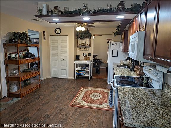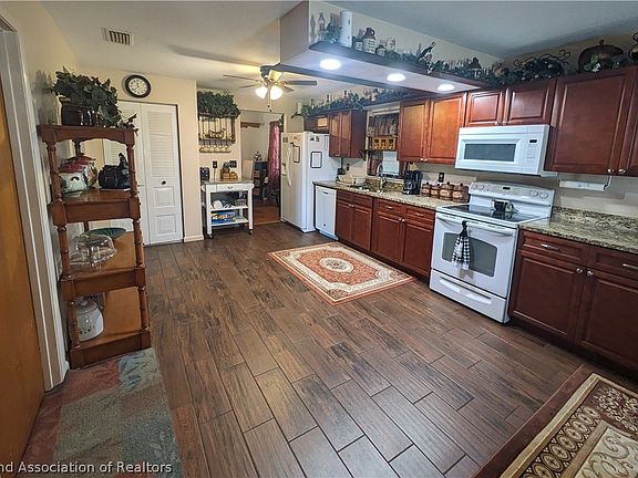Bring your camper, trailers and four wheelers! This nice 3 bed, 2 bath home sits on just over half an acre of land and tucked away in a quiet area of Avon Park Lakes. Some updates already taken care of including a 2020 A/C, new carpet in 2 of the bedrooms, and a beautifully remodeled kitchen with new tile flooring, GRANITE, lovely cabinets, dimmable recessed lighting and a pantry. Bright and cozy living room with stone-accented wood fireplace (sellers never used it), spacious dining room and cute breakfast nook with space for a hutch. Master bedroom with linen closet plus a walk-in closet and ensuite with walk-in tile shower. Two decent size guest bedrooms, one is currently used as a craft room, and a guest bathroom with long vanity, linen closet (no door) and tile shower with tub. Large screened rear porch and plenty of space for your fur babies to roam around in the big backyard with two separate fenced-in areas (wooden fence along back is on neighbor's lot, the back yard is closer to the picnic table). Need storage space? Then you've got it here with three sheds! Long driveway for extra parking plus there's a garage and a carport. This is a great home to enjoy the tranquil, country feels yet still close to town.