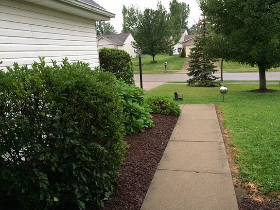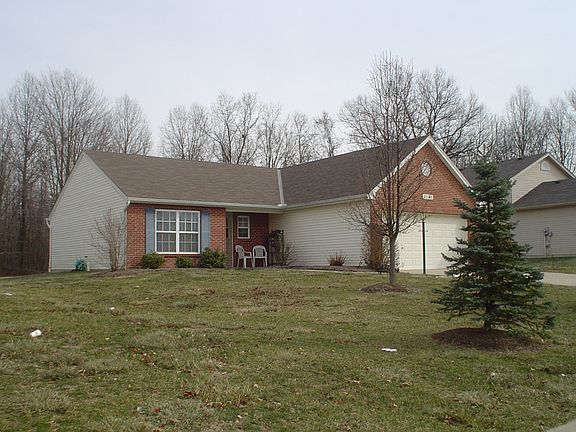 Beautifully maintained no-step ranch on a spacious level lot in quiet Whispering Trees Subdivision. Split bedroom plan with open concept living room and eat-in kitchen. WBFP with elaborate mantel and brick hearth. Tile surrounds in master and guest bath. Large 2-car garage with shelving. Superior landscaping and curb appeal. New AC unit in 2013. Low cost, warm gas heat. Perfect backyard for playing or parties with wooded views.