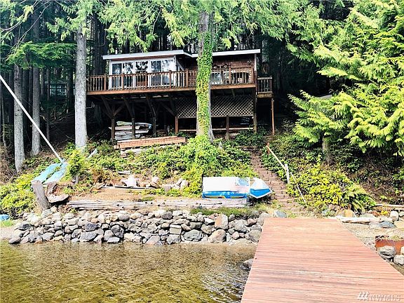 Cute as a button cabin with glacier/island views on the sunny west shore of Lake Cavanaugh. 60' of lakefront w/dock & bulkhead. Living room opens to lakefront deck, kitchen, dining area, 2 finished rooms used for sleeping, loft area for sleeping area/ storage. Water hooked up working bath w/sink & shower, plumbing is in for toilet but needs septic system. Other option is composting or electronic toilet which are not as costly and much easier to do. Great opportunity for lakefront at this price.