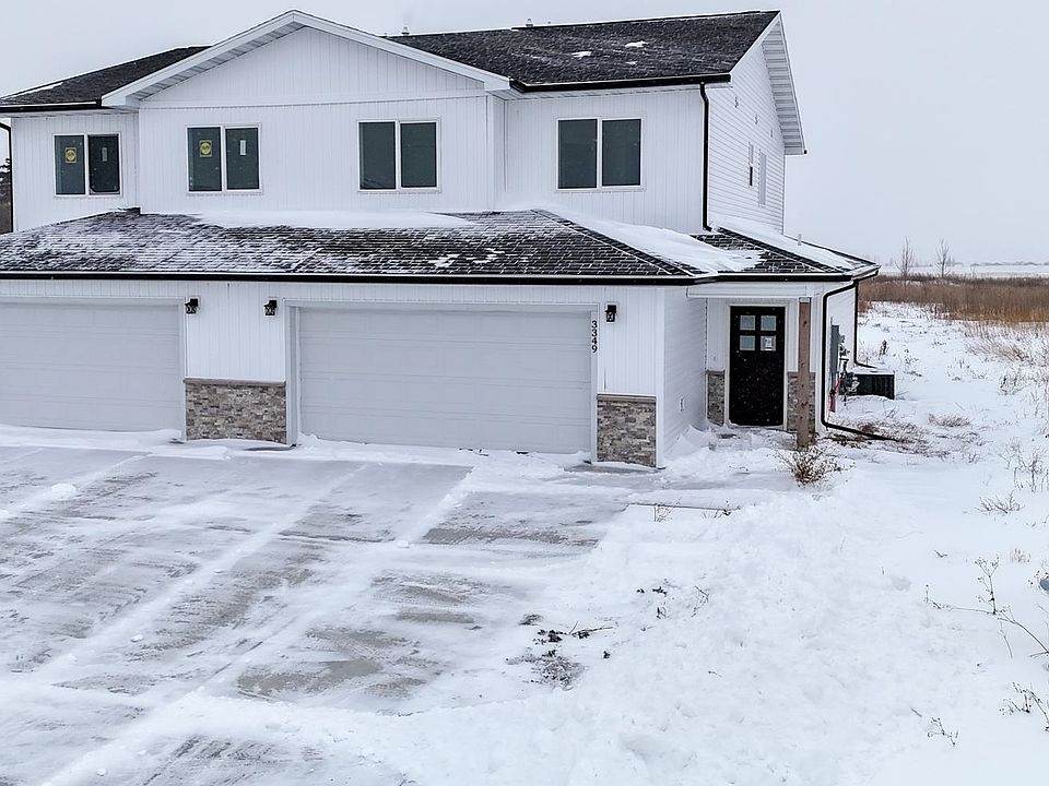 Stunning, new construction townhouse offering comfort and convenience! This 3 bed, 2.5 bath home was well thought-out and designed to impress the moment you walk in the door! The main floor is all about entertaining and features an open-concept kitchen, living and dining space boasting tons of natural light and an unencumbered view. The kitchen is complete with quartz countertops, stainless steel appliances, and ample cabinetry space. The adjacent dining and living space provides comfort and warmth with an electric fireplace and a sliding glass door to your patio. A half bath rounds out the main. Heading upstairs you will fall in love with the Primary bedroom retreat complete with large walk-in closet and en-suite bath. Enjoy a soaker tub, tiled walk-in shower, and dual sink vanity with quartz countertops. There are 2 additional bedrooms with a full size bath on this level. Conveniently located laundry with built-ins rounds out this floor. The attached 2 stall garage is insulated, sheet rocked, with an electric heater. Did we mention the main level of this home is piped for in-floor heat if desired creating a cozy environment throughout. Don't miss this stunning, turn-key home with great access to all of Minot's amenities and MAFB. Call to schedule your showing today!