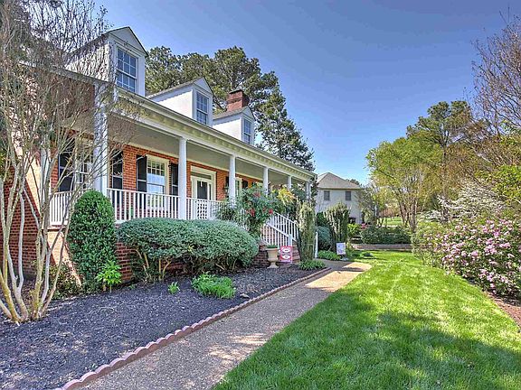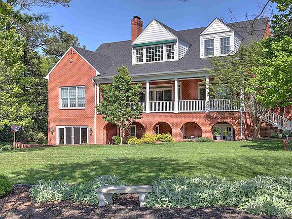 SOLID CONSTRUCTION WITH THIS OVERSIZED OLD VIRGINIA BRICK HOME BUILT BY LOCAL CRAFTSMAN CALVIN TROGDON. 2 X 6 EXTERIOR WALLS WITH EXTRA INSULATION. GOLF COURSE FRONTAGE OVERLOOKING THE 2ND GREEN WITH VIEW OF POND AND LOOKING OUT TO THE 3RD FAIRWAY IN THE FRONT. RECENTLY REMODELED KITCHEN WITH NEW GRANITE TOPS AND HIGH-END KITCHEN-AID STAINLESS STEEL APPLIANCES. KITCHEN FLOWS INTO A LARGE GREAT ROOM WITH CATHEDRAL CEILING, FULL HEIGHT STONE FIREPLACE SURROUNDED BY BUILT-IN CHERRY CABINETS. THE HOME OFFERS A LARGE PRIVATE MASTER SUITE WITH HIS AND HERS VANITIES WITH GRANITE TOPS AND HEART PINE CABINETS, 2 LARGE CLOSETS AND WALKOUT TO A FULL LENGTH COVERED BRICKED PORCH. 2021 NEW ROOF AND NEWLY PAVED DRIVE. OTHER AMENITIES INCLUDE SEPARATE DINING ROOM WITH CROWN AND CHAIR MOLDINGS, A WET BAR WITH HEART PINE CABINET, A LARGE WALK-IN PANTRY AND BOTH ELECTRIC SOLAR SHADES AND ELECTRIC AWNING ON BACKSIDE WINDOW AND PORCH. EXTERIOR AMENITIES INCLUDE IN-GROUND IRRIGATION SYSTEM, INVISIBLE DOG FENCE AND LEAF GUARD GUTTERS. PROFESSIONALLY LANDSCAPED WITH A 2-LEVEL STONE WALL GARDEN BED/BUFFER ADDED IN THE FRONT OF HOME.