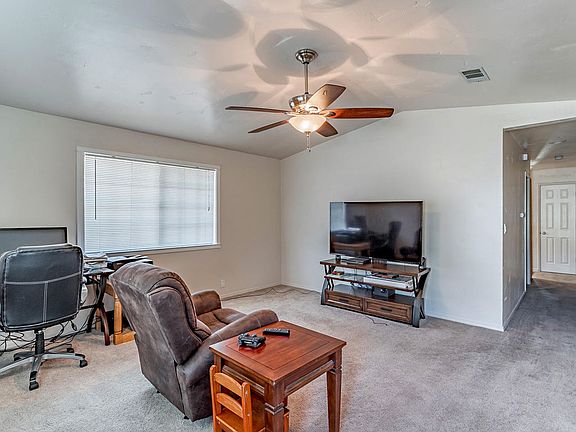Charming home on large city lot. Bright and open floor plan with vaulted ceilings. Central Heating and Air. Cute Kitchen with dishwasher, gas range and plenty of cabinet space. 3 spacious bedrooms with ceiling fans. Attached garage and long driveway with room for over sized parking.