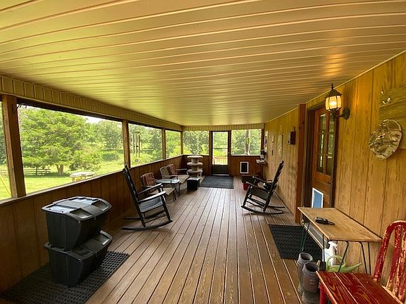 Enjoy the tranquility of this almost 13 acres from several decks or porches from this home! This property features 3 car detached garage, RV Shed, barn and pond. There is a spacious screened in side porch to view the picturesque landscape! It is fenced and cross fenced. Inside you will find spacious openings to make the home feel more open concept! Master bath has double vanities and large shower! You don't want to miss checking out this property!