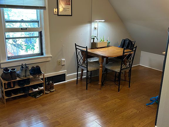 Upper unit featuring one bedrooms and one bathroom. Very spacious bedroom that has room for an office setup. Tenant to pay electric. Wifi, water, sewer, and trash are included. Shared laundry in the basement along with storage shelving. Driveway parking.