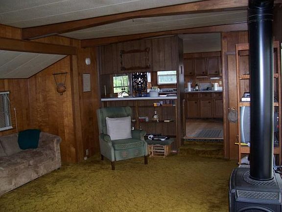 Very nice singlewide w/partial basement & added mud room. Wood burning furnace in basement along w/wood chute. 320' of Kettle River frontage. All flat ground w/excellent pasture. Room for shooting range if desired. Detached 2 car garage & RV storage/shop. Generator that will run the house included. New tractor is negotiable.