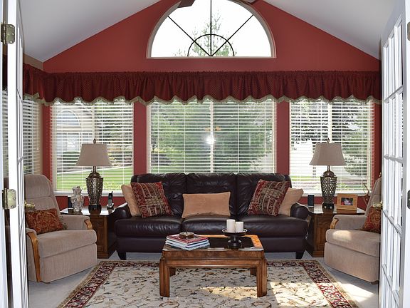 Best lot in Timbers Edge ($ premium) with park-like view. Spacious, open concept Abbey ranch model, meticulously cared for with so many extras! - Solar film on all windows keeps you cozy in winter and cool in summer - Arched bedroom windows fitted with movable custom cellular black-out shades - Under- and over-cabinet lighting accents luxurious granite counters in spotless ceramic-tiled kitchen - Extra upgraded Merillat maple cabinets include roll out shelves, lazy Susan corners and pantry - Custom halogen lights in living room above gas log fireplace and opposite wall await your special artwork - Both oversized en suite bedrooms boast walk-in closets - Vaulted ceilings in all rooms feature Hunter fans - Pleasant 4-season sunroom radiates light and cheer - New disposal and newer water heater - Oversized 2 car attached garage PLUS, security system offers extra peace of mind. This one-owner (NON-SMOKERS, no pets) home is professionally decorated and landscaped with nothing for you to do but enjoy the great entertainment spaces in the clubhouse and screened veranda, fitness center and sparkling pool with your new friends and neighbors. CALL SOON, this pristine beauty will not last! 779-702-6152
