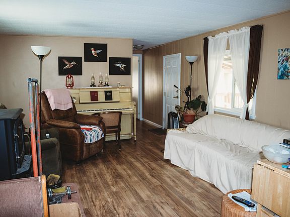 YOUR PIECE OF PARADISE RIGHT ON THE KETTLE RIVER: stunning surveyed 7 acre mini-farm property with 165 ft of premium river frontage and a sandy beach; build your dream house on the magnificent property or simply enjoy the good life in the cozy older ('77) single wide with carport and deck. Level, usable acreage with orchard (numerous fruit trees) lush pasture, garden areas, chicken coop; shop constructed of two 40ft shipping containers for lots of dry storage, and roofed-in open area for tractor and equipment.