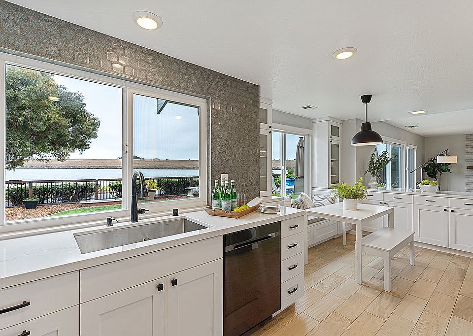Situated in a very desirable East End neighborhood on a serene court, this sophisticated contemporary home sits directly on San Leandro Bay. Built in 1984, the home was designed to take full advantage of beautiful water and marina views, & is characterized by an open floor plan, high ceilings and large rooms. Spacious at 2552 SF, this stylish home includes 4BR, 3BA, a large LR/DR, remodeled kitchen, family room & 2-car garage. The huge primary bedroom suite has expansive water views, & the beautifully remodeled kitchen and primary bathroom have timeless finishes. New exterior paint, bamboo hardwood floors, dual-pane windows & many upgrades throughout. Part of the small Waterford Cove HOA and located at the end of a cul-de-sac, the Aeolian Yacht Club/Marina are 2 blocks away & Otis Elementary & Lincoln Middle schools are a short distance. Easy access to South Shore Center, SF Ferry, BART, freeways & OAK. A beautiful turn-key home in an exceptional East End location!
