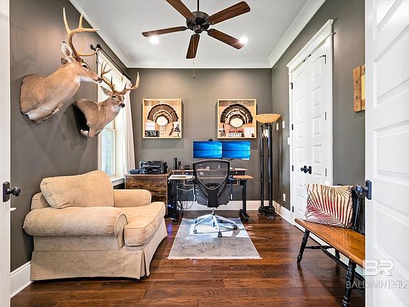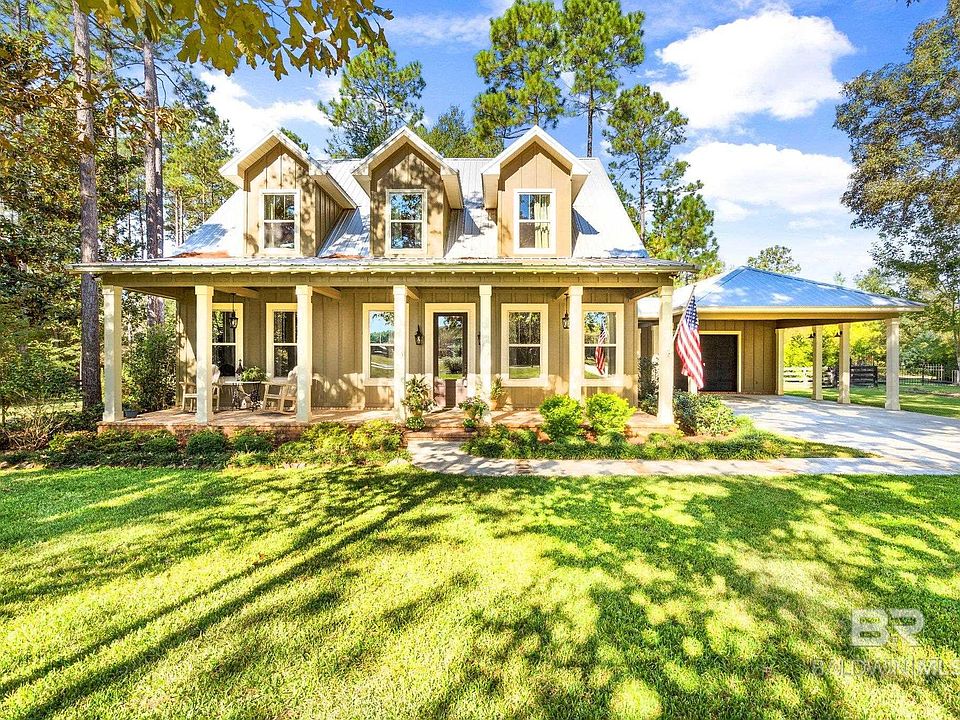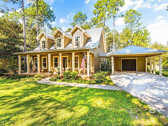 Fall in love with this amazing property where living is easy, in the lovely gated Steelwood community in Baldwin County. Located on 1 acre of land, this custom built, charming craftsman, has many great features to offer. The floor plan encompasses 4 bedrooms, 2.5 bathrooms, a sleek and stylish kitchen that proudly boasts white cabinets, quartz countertops, Chicago brick backsplash, GE Café Series stainless steel appliances, a breakfast nook & a unique copper farmhouse sink. Hardwood flooring abounds and flows from the kitchen through the main living area, to the private dining room, and is beautifully showcased throughout the great room where it highlights the staircase, gas fireplace and custom built ins on both sides. The downstairs primary bedroom ensuite, is sure to provide a peaceful nights sleep with your own private sauna. As you step outside onto the Chicago brick pavers, the screened in porch reveals a built in kitchen with a charcoal grill and gas burner, and a wood burning fireplace, all overlooking the privately fenced in backyard. The sellers have spared no expense when it comes to quality & functionality with a whole house Generac generator, Rinnai tankless water heater, spray foam insulation, a 20'x20' storage building with a double carport and a Trane A/C unit.   The Steelwood community has so much to offer. Included in your POA dues, & only one block away, is access to the outdoor pool, kiddie pool, splash pad, pavilion with bathrooms, pickle ball court, ping pong, playground, dog park, basketball court and miles of beautiful roads to enjoy wildlife while walking, running or biking in the safety of a gated community with staffed security. With an additional Steelwood Country Club membership, you will have the opportunity to join one of the nation's premier, award-winning golf courses and fish the finest fully stocked 200 acre private lake in the state of Alabama. Call for your personal showing today.