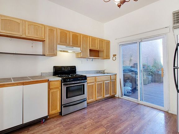 3 bedroom/1.5 bath duplex with private deck above .garden below.Parlor floor includes open plan kitchen/dining/living area with sliding glass door to deck, and a half-bath. Second floor has one large bedroom and two smaller ones, and a jacuzzi bath. In exploding Sunset Park, just one subway stop from the Barclays Center, 2 blocks from the R train and a little further walk to the N and D Express, and a Costco just around the corner!and of course just a short walk to industry city!