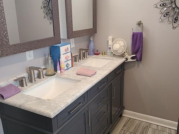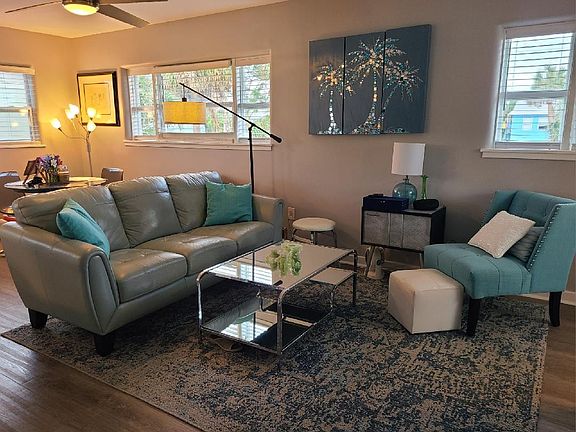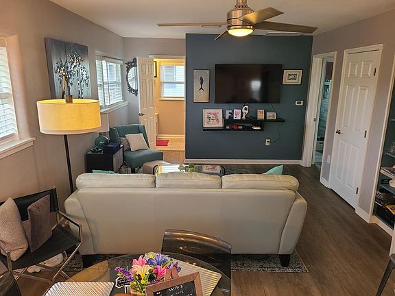 Renovated 2nd floor of duplex with 2 bedrooms and 1 full bath with double vanity and 1 1/2 bath. There is a large backyard and access to swimming pool and pool lounge area. Renter responsible for electric and internet/cable. There is also a $40 flat fee for water/sewage and garbage.