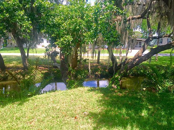 The best location in the Colony Cove selling fully furnished ready to move in and recently updated: new water heater new sub-flooring and laminated flooring also new air throughout, new kitchen floor counters and sink, newer refrigerator, washer and dryer off the kitchen, lattice fencing along long driveway big enough for three cars. Dry shed for extra storage. Your own mailbox, Motion activated lighting in driveway and backyard. Master bedroom has walk-in closet and private bath. Second and Third bedrooms have very roomy closets. Beautiful view from the windows of a tropical stream with fish and exotic birds. Short walk to the clubhouse, gym, pool, and beauty salon. Friendly neighbors. The low monthly lot rent includes property taxes, water, sewer, lawn maintenance, . You will love the lifestyle Colony Cove has to offer.