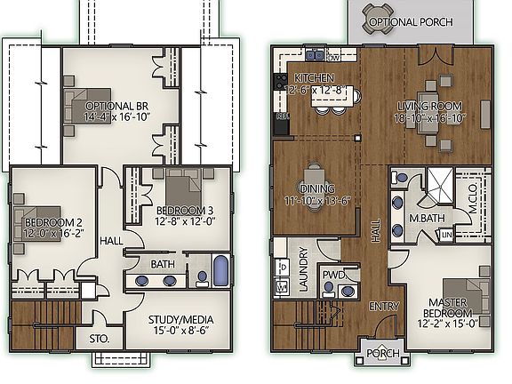 The Alexa II. This open concept floor has a master bedroom on the main level with large walk-in closet & ensuite. Formal living room, formal dinning room, kitchen with oversized island, first floor laundry. Large covered porch!! Second floor media room/study. Two large bedrooms with a third upstairs room that could be used as a 4th bedroom or a flex room. Call to schedule your design appointment today!!