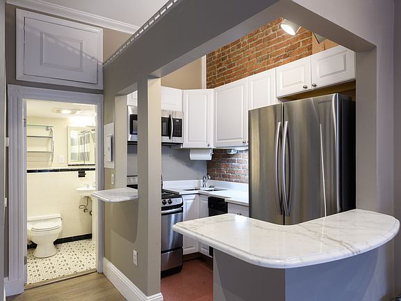 NO FEE ! Renovated Kitchen & Living Space ! Some highlights are : new marble in kitchen, huge walk-in closet, and a sliding door system between living room and bedroom allows for a flexible layout. Exceptionally Clean Building in the Heart of the Back Bay. Rear, South facing bedroom and living room on upper floor, with tall ceilings and lots of light. CENTRAL heat and AC, rarely found in opulent Back Bay houses. Contemporary color scheme parallels the exposed brick and stainless steel fridge. Bathroom a la Restoration Hardware. Nicely manicured front yard. Hardwood floors, high ceilings, central heat and air conditioning. Common laundry in building. Easy access to the Esplanade, Commonwealth Mall, Copley Square, The T, Newbury shops & restaurants, and the Copley & Prudential Malls. Full parking spot available at just $450