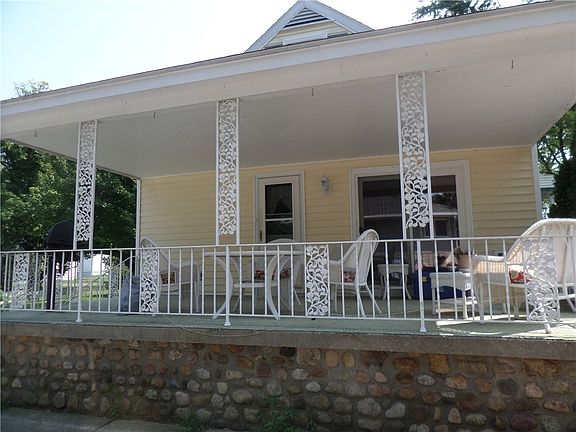 Ready to move into. Updated appliance kitchen, and dining room with glass doors leading to a covered side porch with built in gas grill. Updated bathroom. Living room with gas fireplace. Updated electric. Roof 7 years old. Workshop in basement Includes One Year HSA Home Warranty.
