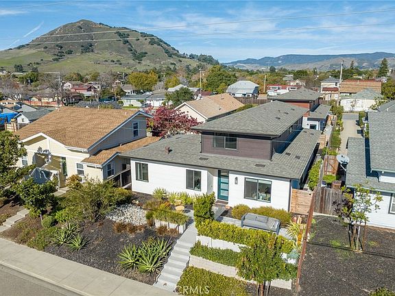 This beautiful modern two bedroom and two bath Approx 2000 Sq Ft home built in 2021 with elegant finishes is located in the heart of downtown San Luis Obispo. Floorplan features open concept great room with high ceilings and wide-planked engineered hardwood flooring filled with natural light. Living room opens to media room which can also be used as a formal dining room. The spacious gourmet kitchen has white shaker cabinet doors with flat drawers and European pulls, quartz countertops, stainless steel farmhouse sink, peninsula with bar seating and stainless-steel Bosch appliances. Downstairs also includes one bedroom, a full bathroom and a laundry room. Upstairs includes the primary bedroom suite with a walk-in closet and with killer views of surrounding hills. A huge bonus room upstairs can be used for many different purposes such as office, a multi-purpose room or another bedroom. Close to Hawthorne Elementary School, Meadow Park, restaurants and shopping.
